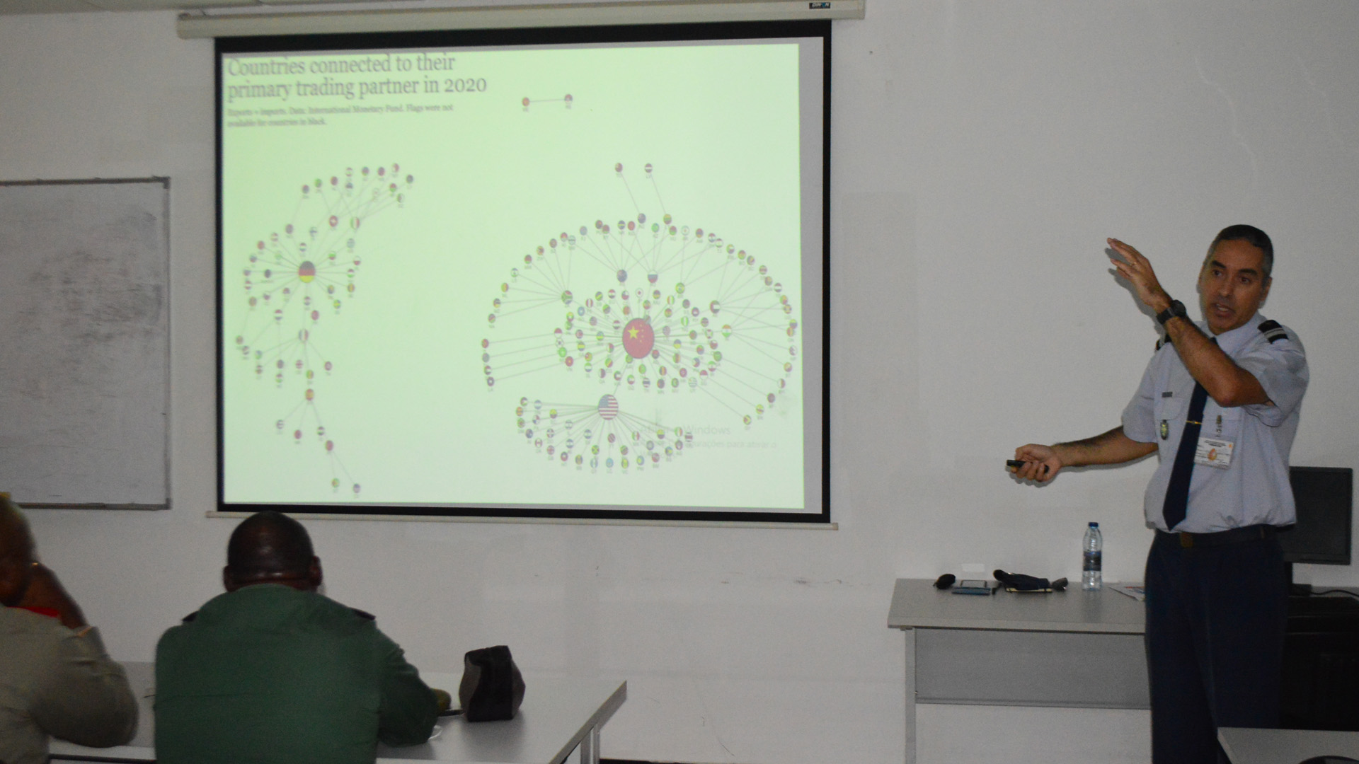 Moçambique – Apresentação do brífingue da decisão ao Comandante do Instituto Superior de Estudos de Defesa “Tenente-General Armando Emílio Guebuza” no âmbito do 10.º Curso de Estado Maior Conjunto.