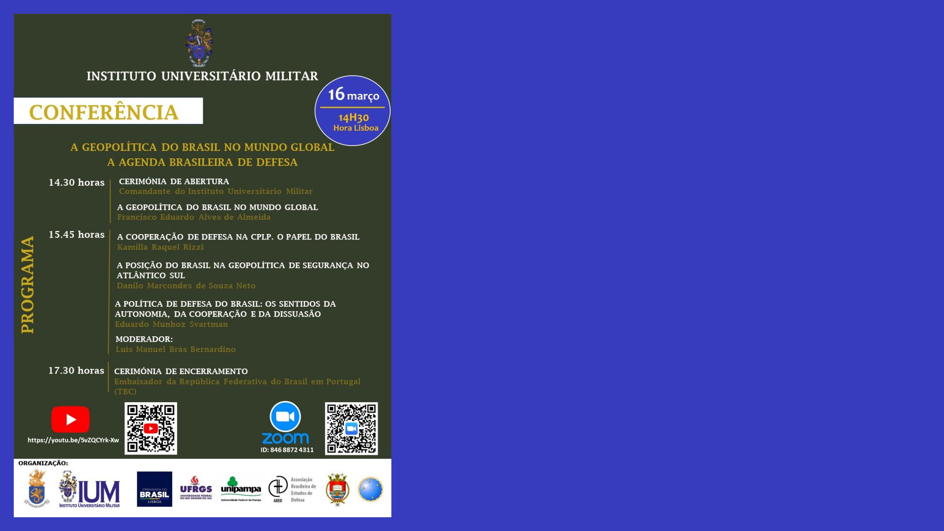 Conferência “A GEOPOLÍTICA DO BRASIL NO MUNDO GLOBAL. A AGENDA BRASILEIRA DE DEFESA”.