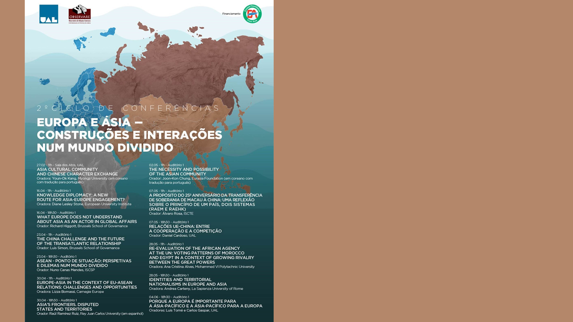 Ciclo de Palestras “Europa e Ásia: Construções e Interações num Mundo Divido” // Universidade Autónoma de Lisboa, de 27 Fevereiro a 4 Junho
