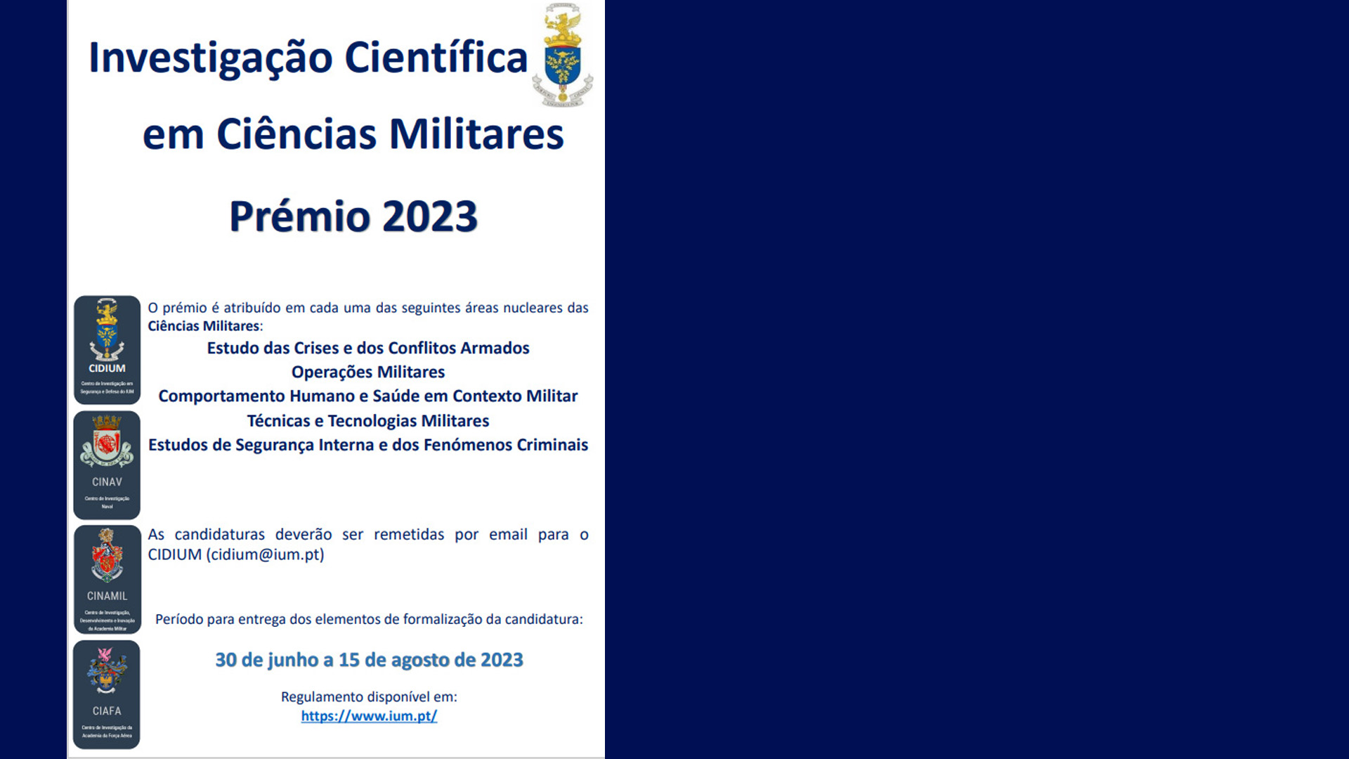 Abertura do Concurso ao Prémio «Investigação Científica em Ciências Militares 2023»
