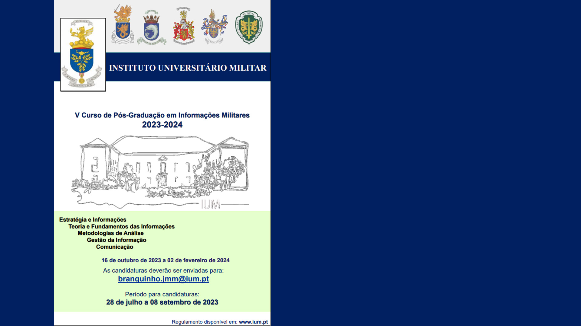 Abertura de Candidaturas ao V Curso de Pós-Graduação em Informações Militares 2023-2024