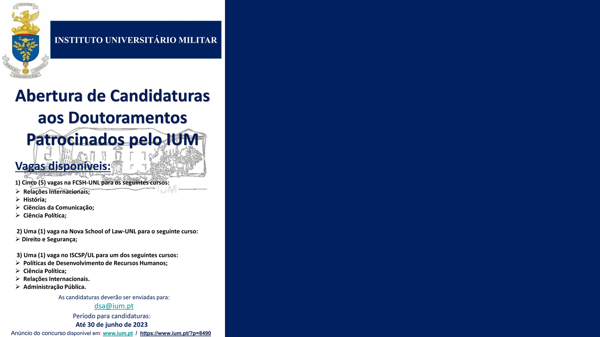 Abertura de Candidaturas aos Doutoramentos Patrocinados pelo IUM