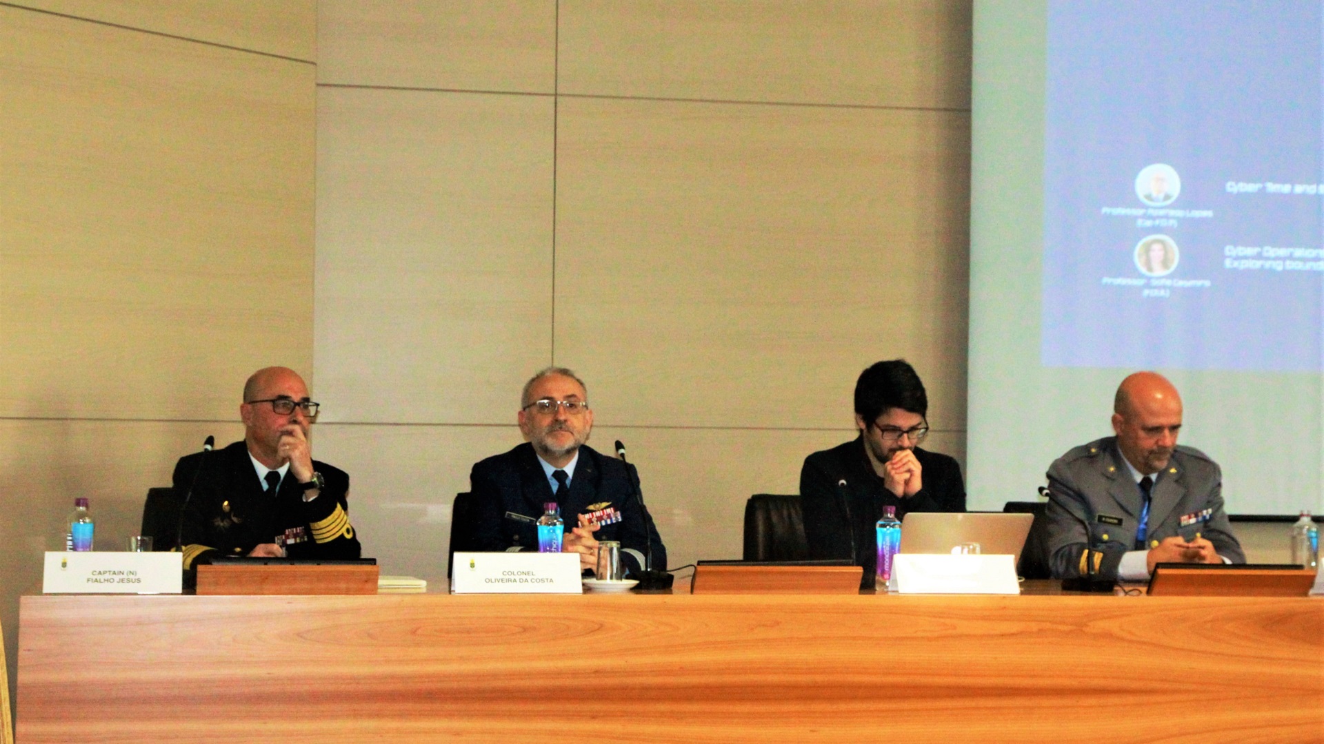 No painel subsequente, o Coronel Reimão Teixeira, do Centro de Ciberdefesa do Estado-Maior-General das Forças Armadas apresentou os desafios e as oportunidades na edificação de um Comando de Operações no Ciberespaço, o Professor Pedro Miguel Adão, do Instituto Superior Técnico, apresentou o contributo e diferenciação da Academia na formação de competência e nas operações no Ciberespaço e, por fim, o Comandante Fialho de Jesus, do Instituto Universitário Militar, apresentou uma reflexão mediante uma análise aos acontecimentos no Ciberespaço no conflito da Ucrânia.
