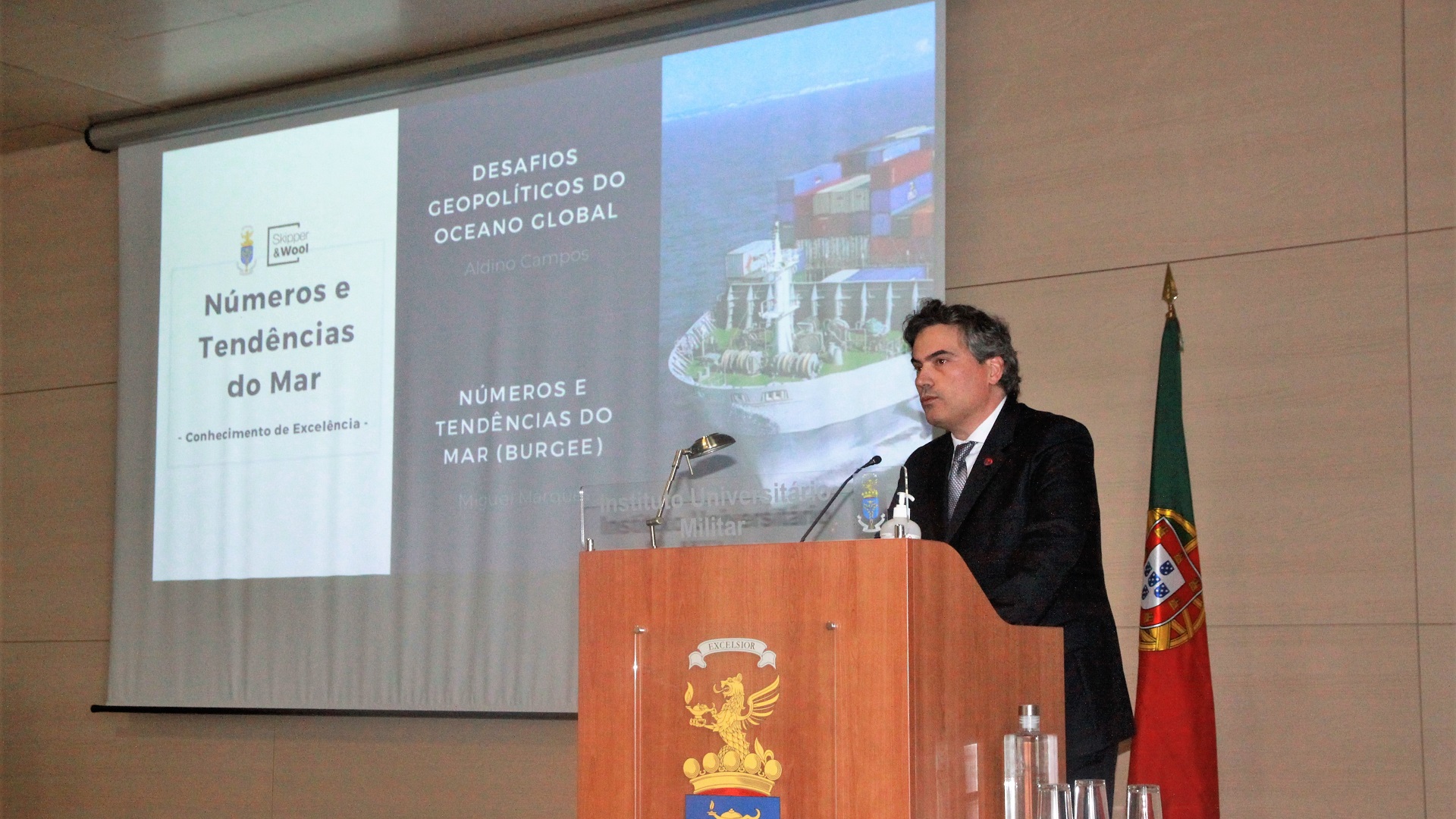 Decorreu no Instituto Universitário Militar (IUM) uma sessão intitulada “Números e Tendências do Mar”, organizada pela empresa Skipper & Wool, no dia 24 de janeiro de 2023. Esta iniciativa contou com duas comunicações, uma sobre os "Desafios Geopolíticos do Oceano Global”, apresentado pelo Comandante Aldino Santos de Campos, membro da Comissão dos Limites da Plataforma Continental das Nações Unidas e uma outra comunicação sobre os "Números e Tendências do Mar” da responsabilidade do Dr. Miguel Marques, CEO da empresa Skipper & Wool.