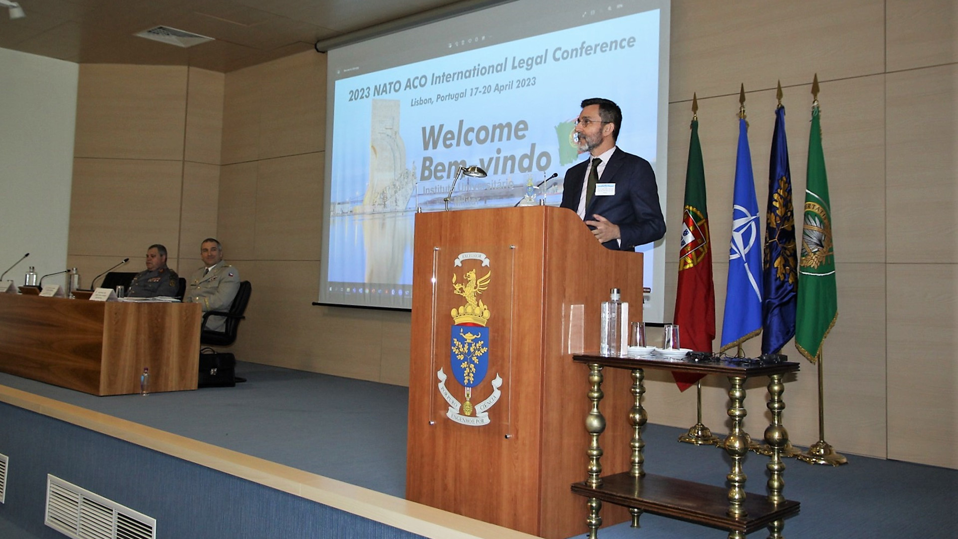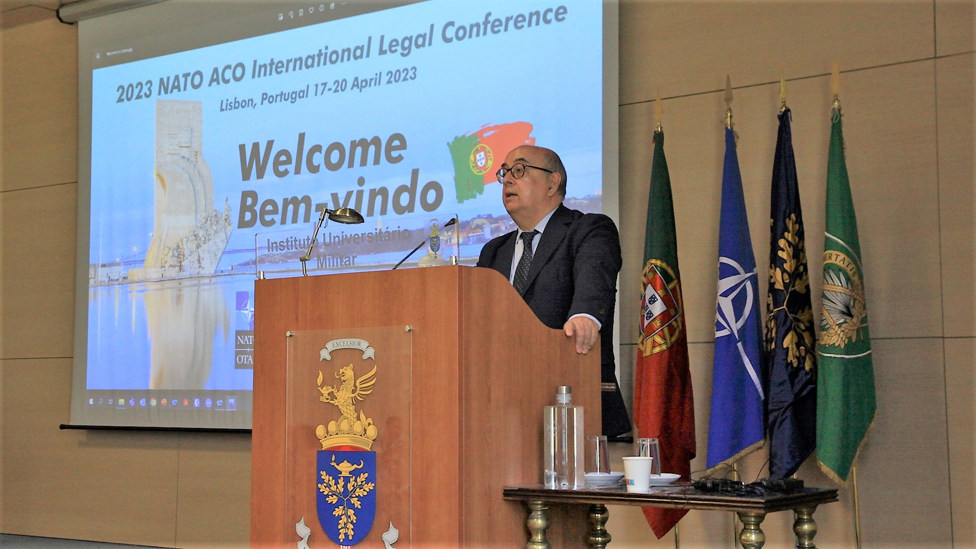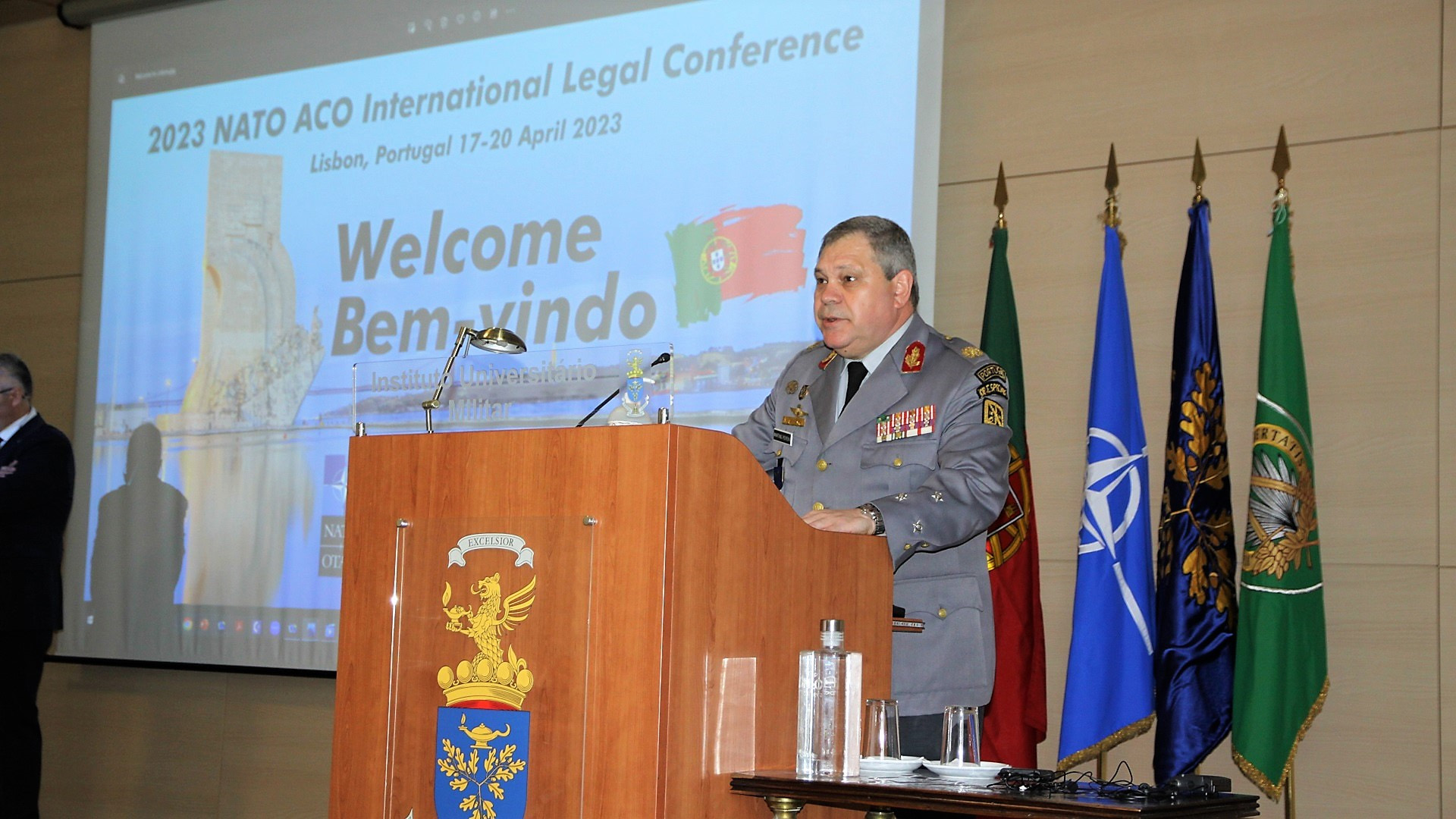 Realizou-se hoje, 18 de abril, a abertura da NATO ACO International Legal Conference 2023, que decorre no Instituto Universitário Militar, de 18 a 20 de abril de 2023.