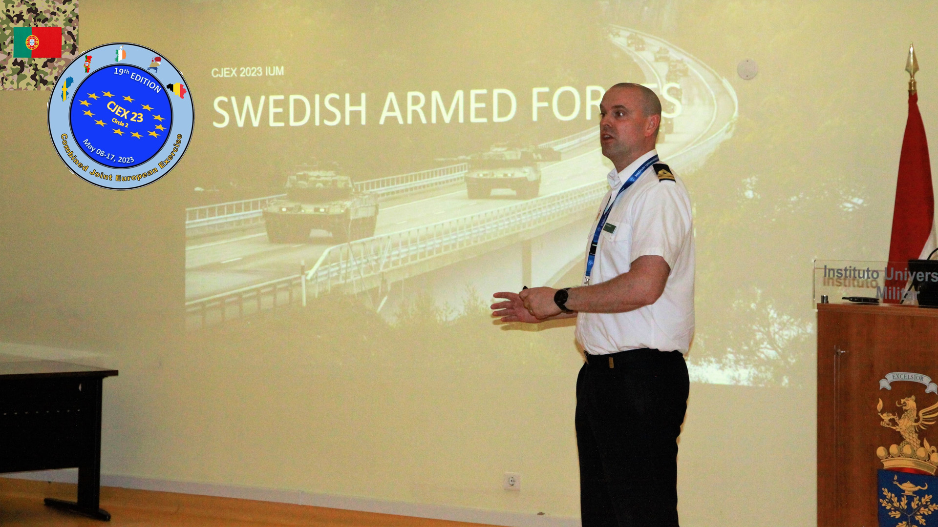 De forma extraordinária e devido ao processo de adesão à Aliança em curso e à realização no seu território do exercício AURORA 23, a Suécia participou somente com alguns tutores e alunos, não tendo organizado o CJEX 23 nas instalações da Försvarshögskolan/ Swedish Defence University (SEDU).