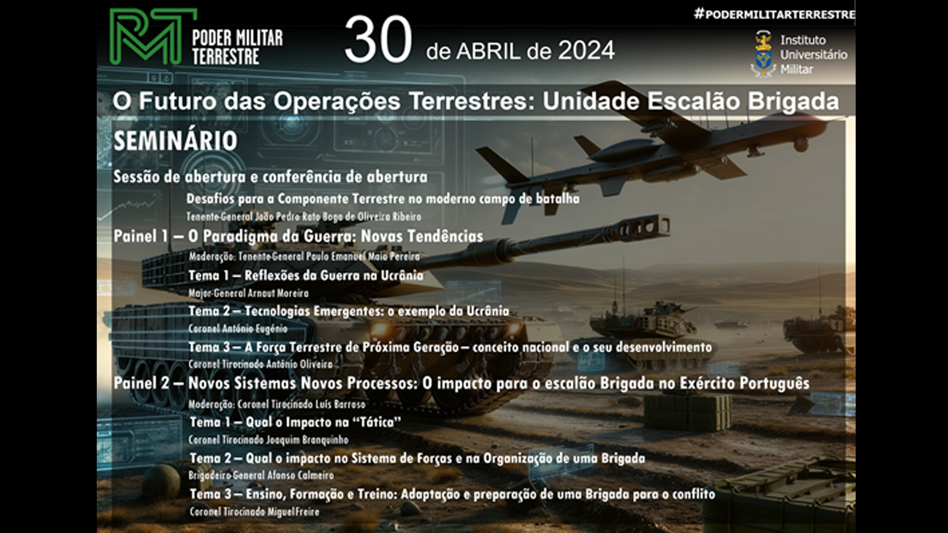 Teve lugar no Instituto Universitário Militar, no dia 30 de abril de 2024, o Seminário do Poder Militar Terrestre 2024, presidido pelo Exmo. Tenente-General Hermínio Teodoro Maio, Comandante do instituto Universitário Militar.