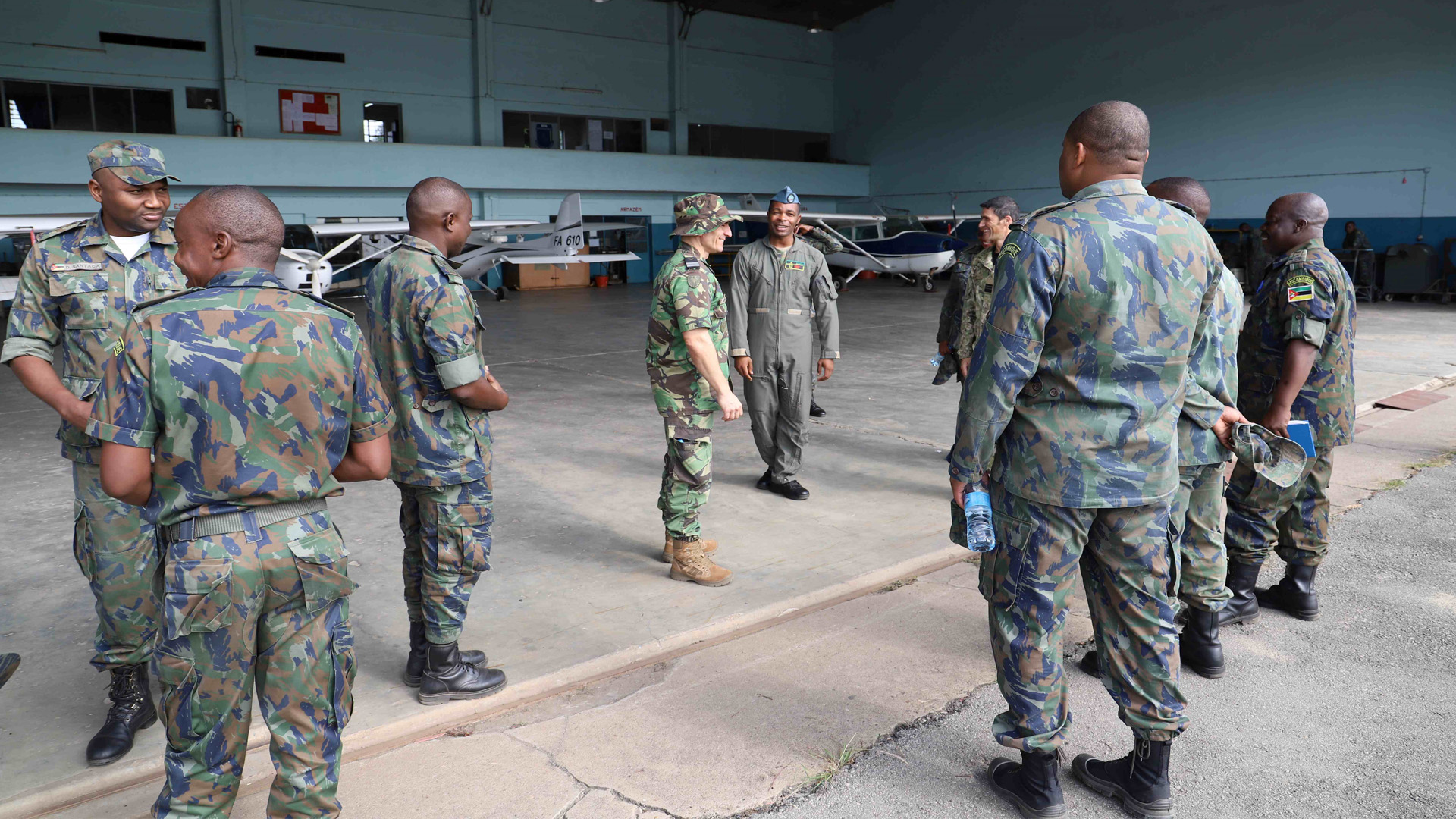 A visita iniciou na Base Aérea de Mavalane com um brífingue sobre a organização e atividades operacionais, seguido de uma visita às instalações, permitindo compreender os desafios enfrentados, especialmente no âmbito da manutenção das aeronaves. Posteriormente procedeu-se à visita das instalações da Escola Prática de Aviação, onde foi possível discutir o processo de controlo das operações aéreas e sistema de manutenção implementado.