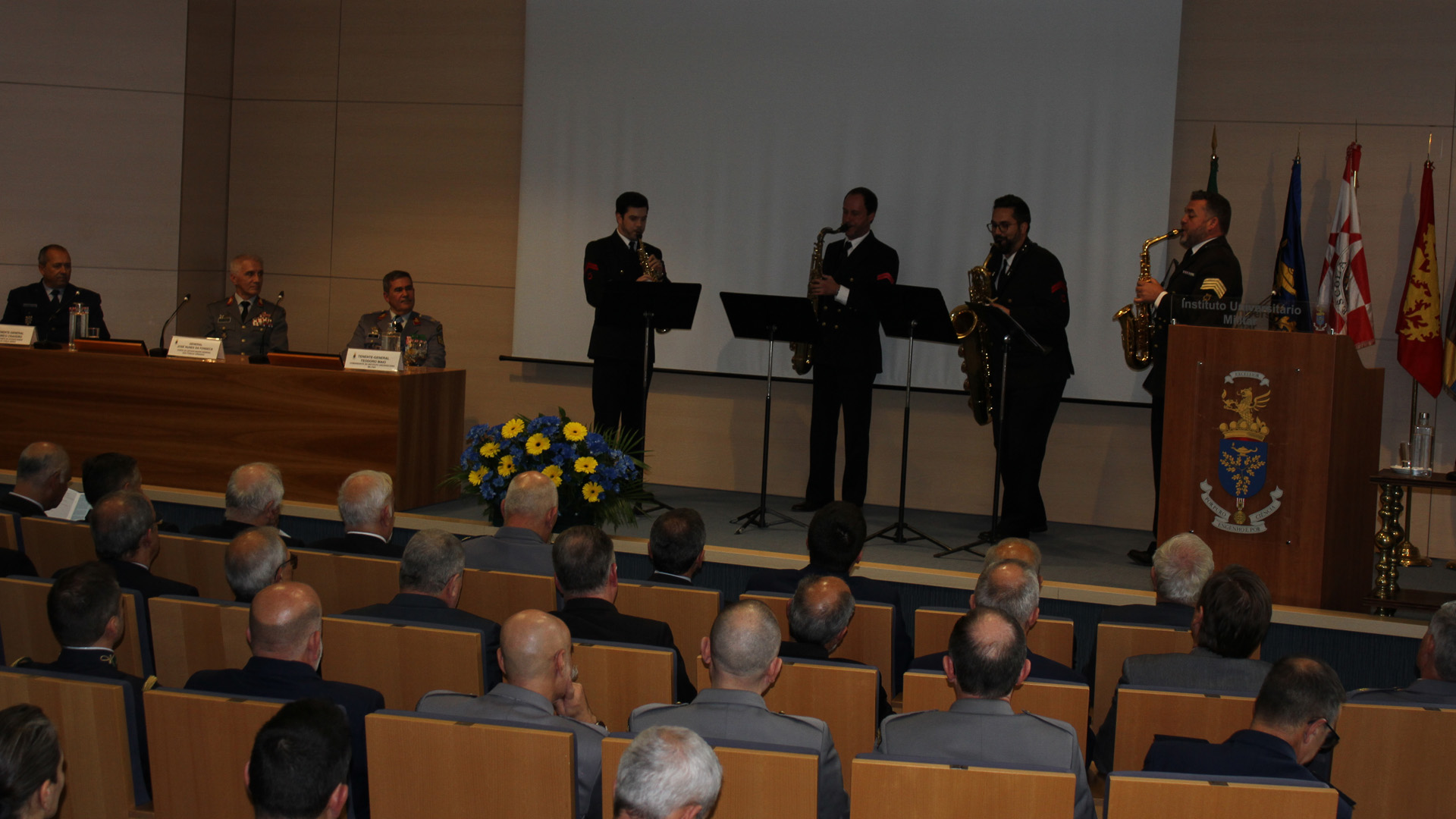 O evento, presidido por S. Ex.ª o Chefe do Estado-Maior General das Forças Armadas, General José Nunes da Fonseca, teve o seu início com o cortejo académico composto pelos professores de todas as Unidades Orgânicas do IUM, acompanhado pelo som do Hino Académico “Gaudeamus Igitur”, tocado pela Banda da Armada.