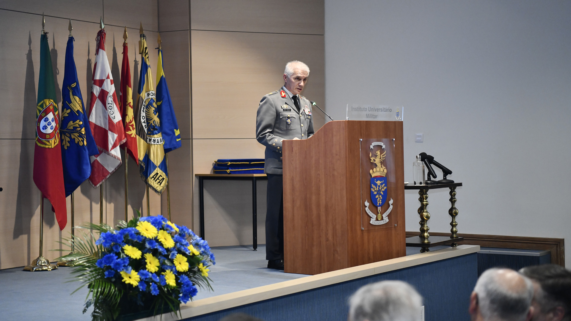 A cerimónia foi concluída por S. Ex.ª o Chefe do Estado-Maior General das Forças Armadas, que no seu discurso lembrou a importância do IUM para a formação de lideranças militares e a sua ligação privilegiada com organizações da sociedade civil, de Ensino Superior e outras, destacando a acreditação concedida pela Agência de Acreditação do Ensino superior (A3ES) a qual confirma a credibilidade do Instituto e o afirma como estrutura cimeira e determinante no quadro do Ensino Superior Universitário Militar.