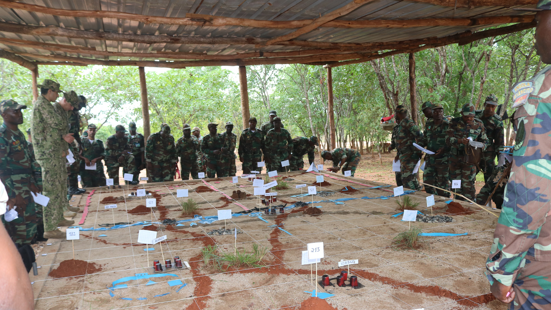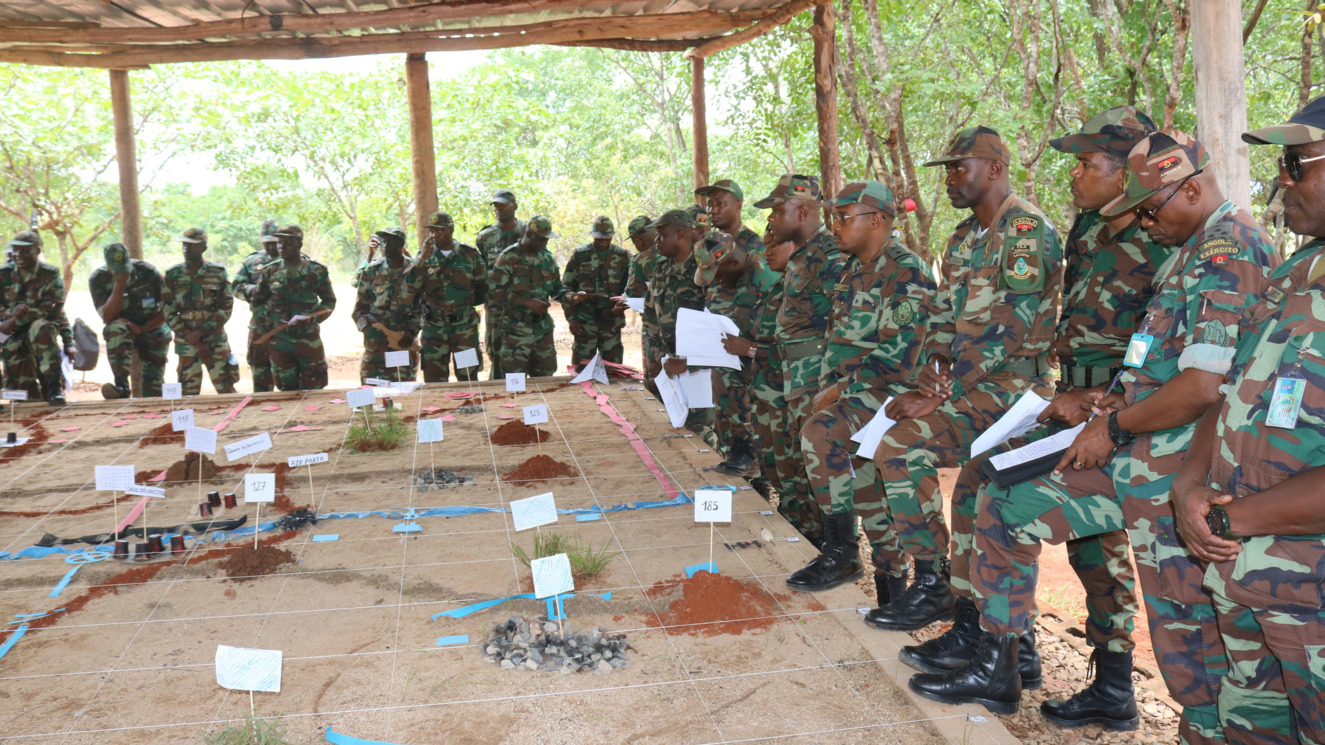 Esta importante atividade de planeamento militar foi acompanhada pelo Comando do Instituto Superior do Exército (ISE) e permitiu refinar as Modalidades de Ação (M/A) desenvolvidas em sala pelos auditores do 1.º CCEM-E. Os auditores foram divididos em cinco Grupos de Trabalho, cada um com tarefas específicas na preparação e condução do jogo de guerra, que foi realizado numa caixa de areia cuidadosamente preparada pelo 1.º CCEM-E. Realça-se a dedicação dos alunos nesta atividade e a troca de experiências que em muito enriqueceu todas as entidades envolvidas. A iniciativa de realizar esta atividade no campo, nomeadamente em caixa de areia existente no CCAB, foi reconhecidamente elogiada pelos auditores e diretores das várias áreas e departamentos do ISE, tendo contribuído para o desenvolvimento dos conhecimentos técnico-táticos dos auditores e para a consolidação do ensino superior militar no ISE, reforçando, ainda mais, a cooperação no domínio da defesa entre Portugal e Angola.