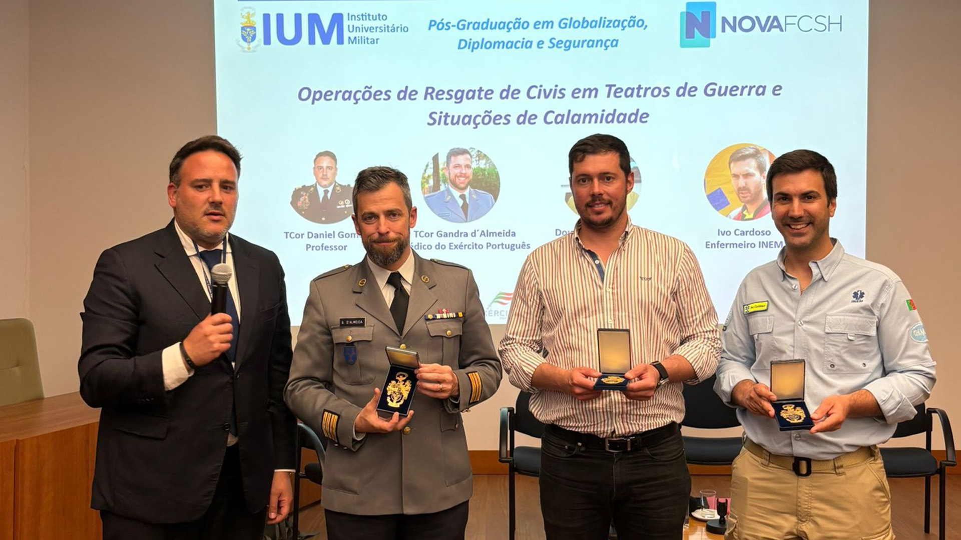 Os conferencistas partilharam a sua vasta experiência profissional, com especial destaque nas operações de resposta a crises e evacuação em contextos de guerra e de catástrofes. Durante o evento, foram debatidos os principais desafios em operações de resgate, sublinhando-se a importância da coordenação internacional, da segurança e da gestão médica em ambientes de elevado risco.