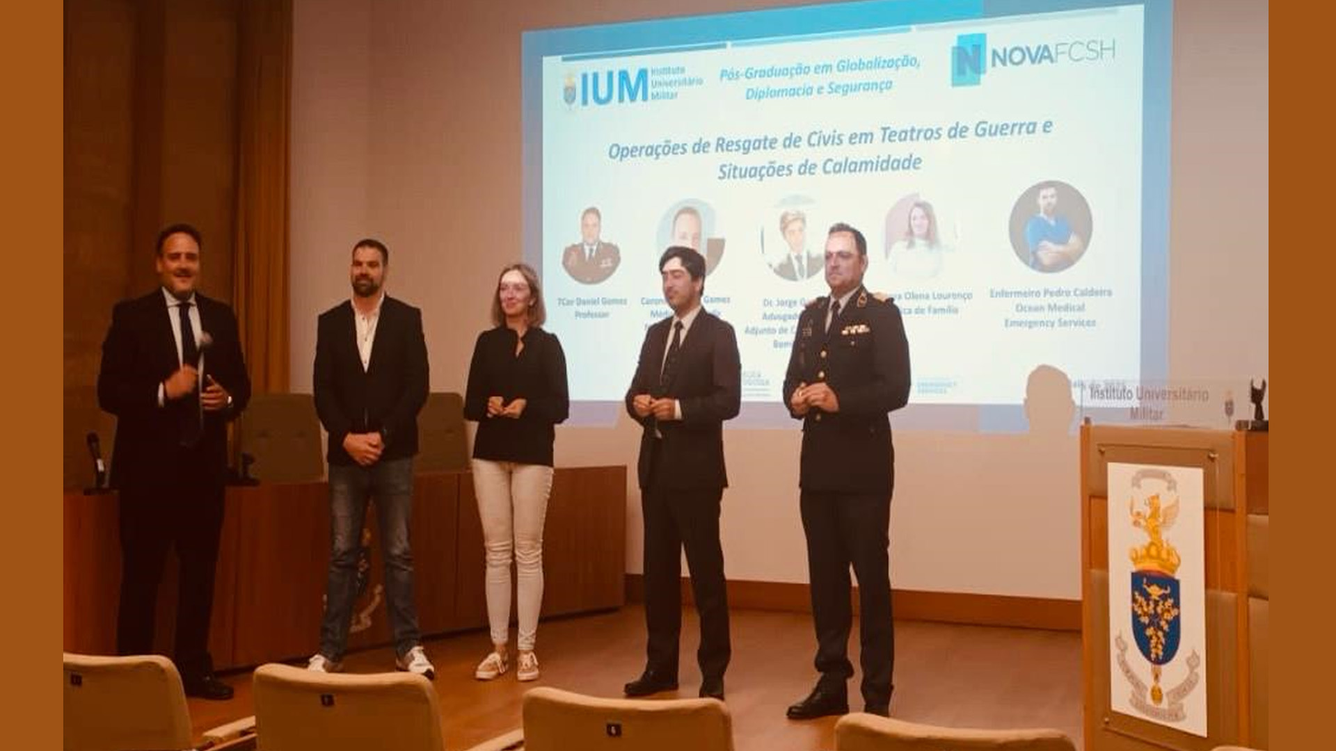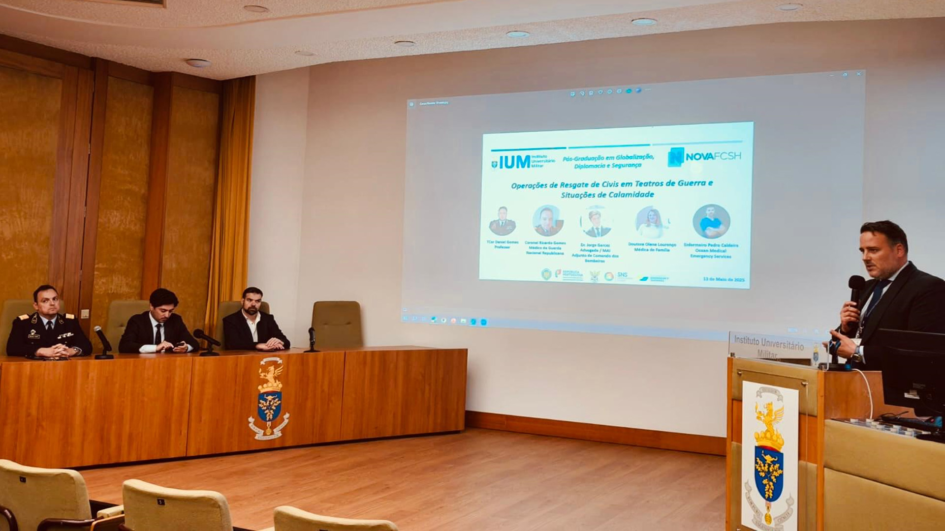 No dia 13 de maio de 2025, o Instituto Universitário Militar (IUM) acolheu um seminário da Pós-Graduação em Globalização, Diplomacia e Segurança (PGGDS), com o tema "Operações de Resgate de Civis em Teatros de Guerra e Situações de Calamidade". O evento reuniu um conjunto de especialistas de renome na área de operações de resgate e retirada de civis, proporcionando uma valiosa troca de experiências com os alunos e profissionais presentes.