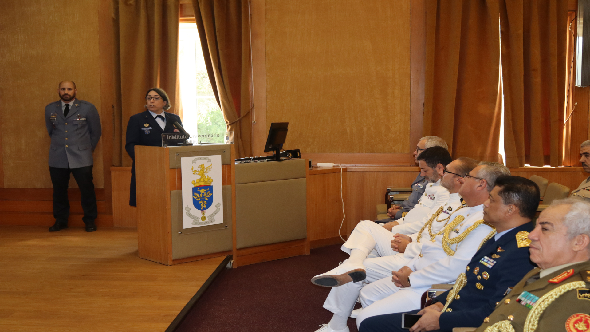 A cerimónia contou com a intervenção da Chefe do Departamento de Estudos Pós-Graduados do IUM, Major-General Ana Telha, que discursou em nome do Comandante do Instituto, Vice-Almirante Vizinha Mirones. Na sua alocução, a Major-General sublinhou o papel essencial do IUM como instituição de ensino superior militar responsável pela formação de Oficiais das Forças Armadas e da Guarda Nacional Republicana, destacando o seu legado histórico, a excelência académica e o compromisso com a investigação, a formação contínua e a cooperação internacional.
