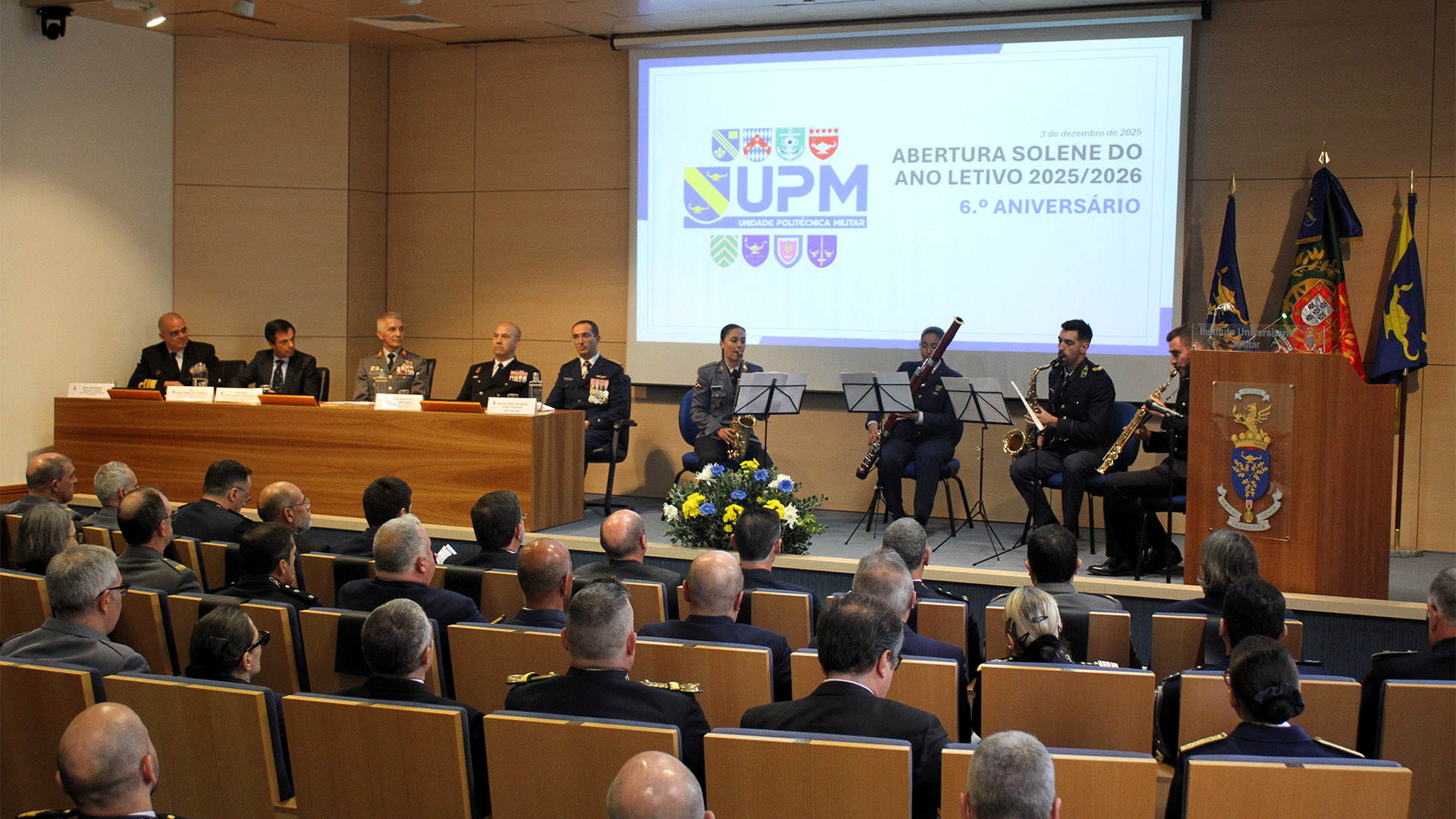 O Instituto Universitário Militar (IUM), assinalou a Abertura Solene do Ano Letivo 2025/2026 e o 6.º Aniversário da Unidade Politécnica Militar (UPM), no dia 3 de dezembro.  A cerimónia, que foi presidida pelo Chefe do Estado-Maior-General das Forças Armadas (CEMGFA), General José Nunes da Fonseca, contou com a presença do Secretário de Estado Adjunto da Política da Defesa Nacional, Dr. Nuno Pinheiro torres, assim como diversas entidades civis e militares das Forças Armadas e da GNR.