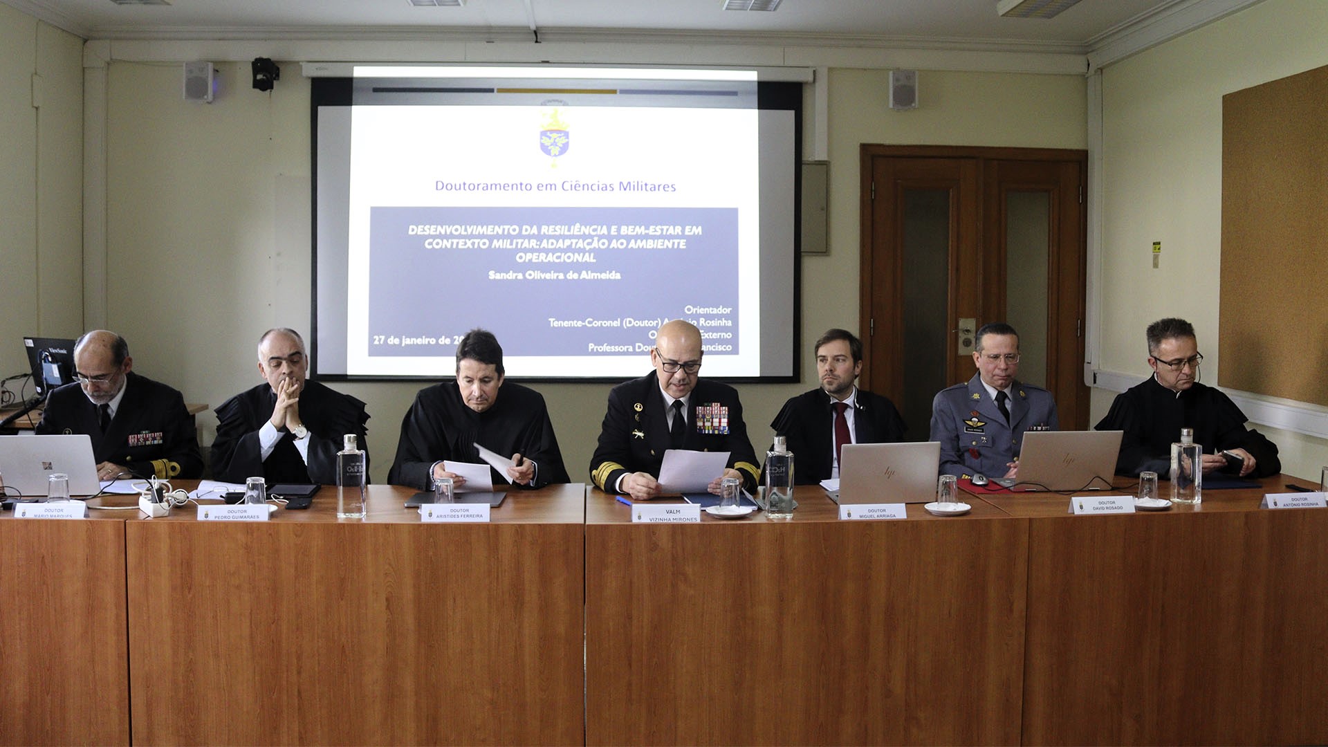 A candidata defendeu a tese intitulada “Desenvolvimento da resiliência e bem-estar em contexto militar: Adaptação ao ambiente operacional”, um trabalho de investigação alinhado com os desafios contemporâneos da condição militar, da prontidão operacional e da sustentabilidade humana em contextos de elevada exigência psicológica, emocional e organizacional.