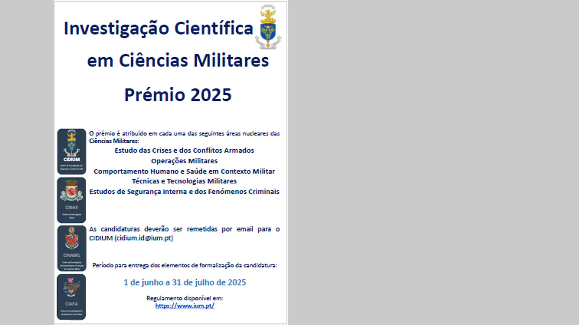 Abertura do Concurso ao Prémio “Investigação Científica em Ciências Militares 2025”